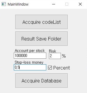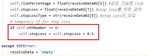일단 실행을 하였더니, 위 스크린샷에서 볼 수 있는 것처럼, 일단 손절매를 하기 위한 퍼센트로 0.5를 만들어 주는 것을 확인할 수 있었습니다.
