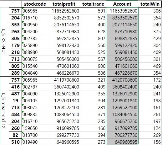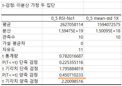 그리고 나서 위 스크린샷에서 볼 수 있는 것으로, 일단 1번 매도/매수 룰과 2번 매도/매수 룰에서 유의차가 없다는 것을 확인할 수 있었습니다.