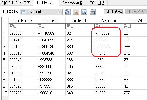 그런데 결과를 보니, 여전히 마이너스 계좌가 나오는 것을 확인할 수 있었습니다. 이게 어떻게 된 일인지 몰라서, 다시한번 결과를 자세히 보도록 했습니다.