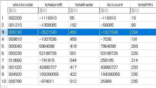 이렇게 한 다음에, 위 스크린샷에 나오는 것처럼 Bottom 10의 종목을 동원해서 한번 여기서 어떤 일이 벌어지는 지에 대해서 알아보고자 합니다.