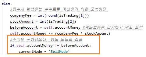 그렇게 하고 나서, 다음으로 볼 수 있는 것으로는 위 스크린샷에서 볼 수 있는 것처럼, 일단 매수를 하고 났으니, 이제는 SellMode로 전환을 하라는 식으로 어떻게 연동을 해 보도록 합니다.