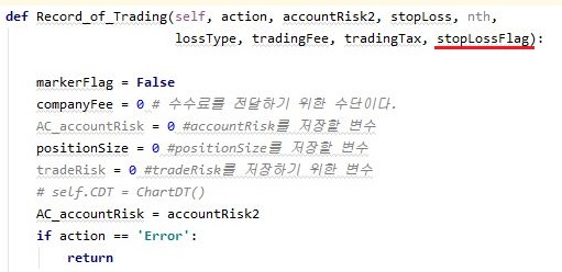 이렇게 해서 Sell이 처리가 되고 나면, 무조건 이 손절매 신호는 다시 False로 바꾸어 줄 필요가 있습니다. 이 다음에는 일반적인 Sell신호인지 아닌지 따져야 하기 때문입니다.