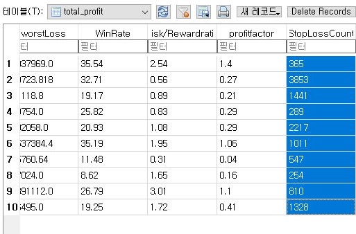 손절매를 너무 많이 해서 손해가 누적된 것이라는 결론이 나왔습니다. 이걸 어떻게 해석해야 하느냐 하면, 일단 너무 손절매가 많다 - 매수 타이밍이 그렇게 좋지 않다는 의미도 됩니다. 그래서 다음 작업은 이제 6단계와 7단계의 중간에 있는 - 바로 6.5단계로 수수료와 세금이라는 상당히 큰 요소에 맞는 새로운 매도/매수 룰을 찾아야 한다는 것을 확인할 수 있었습니다.