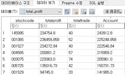 이런 RSI를 뒤고 하고서 이제는 mean-std라고 하는 종가의 이동평균선 + 표준편차를 이용해서 일단 위 스크린샷처럼 수익이 좋은 종목만을 가직 ㅗ왔는데, 여기서는 10만원을 넣고서 30일 정도 있었더니, 위 스크린샷에서 볼 수 있는 것처럼 10만원 이상씩 좋은 종목들은 벌어오는 것을 볼 수 있었습니다.