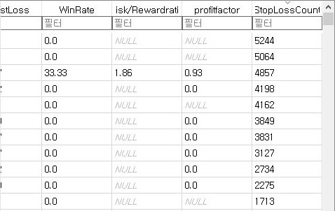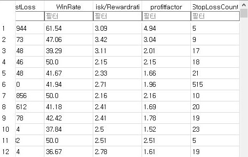 그래서 MFI지수에서도 한번 손절매가 많이 일어난 종목에 대해서 알아보기 위해서, 한번 정렬을 해 보기는 했습니다만, 손절매 횟수가 있다는 것을 찾을 수 없었습니다.