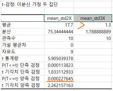 그런데 3배와 5배의 차이에는 유의차가 0.5이면 있을까, 상정했는 0.05에서는 없다고 나오는 것을 확인할 수 있었습니다. 일단 줄어들긴 4배에서 줄어는 들었는데, 이게 유의차가 없다는 상황이기는 합니다.
