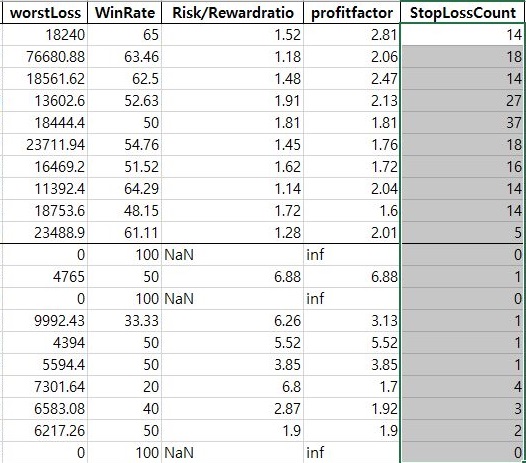 그리고 나서 다음으로 볼 수 있는 것으로는 손절해 횟수가 3배를 했는 조건에서는 유의차가 있게 줄어든 것을 확인할 수 있었습니다. 수익도 줄어들고 동시에 손절매 횟수도 줄어든 것을 확인할 수 있었습니다.