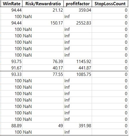 그리고 나서 손절매 횟수를 측정해 보려고 했습니다만, 이게 되지 않았습니다. 어찌된 것인지 이 조건에서는 손절매가 일어나지 않았다는 것으로 나오는 것을 확인할 수 있었습니다.