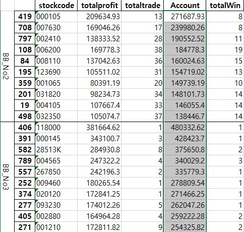 먼저 해야 하는 일안 이 Bollinger Band를 기반으로 해서 나온 결과를 위 스크린샷에서 볼 수 있는 것처럼 일단 정리해서 테이블로 만들어 주고, 최종 계좌를 이용해서 보도록 하는 것 입니다.