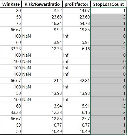 이제 손절매가 얼마나 나왔는지에 대해서 한번 비교를 해보도록 하는데, 일단 여기서는 그렇게 차이가 없어 보이는게, 손절매 횟수가 상당히 적기는 적습니다.