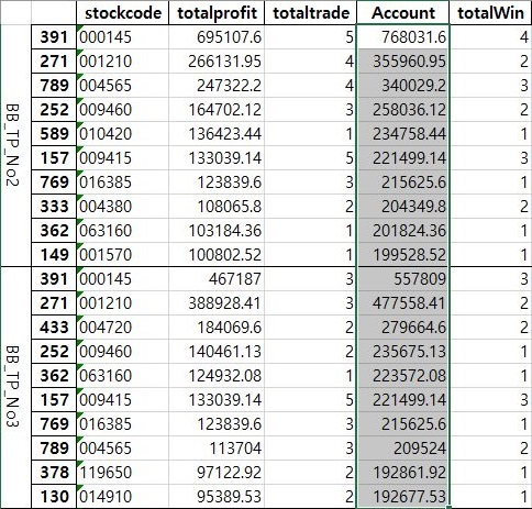 한번 3번과 5번 조건의 손절매 횟수에 대해서 알아보고자 했더니, 여기서도 그렇게 큰 차이가 없다 = 유의차가 없다는 것을 확인할 수 있었습니다. 이래서야 이걸 가지고 무엇을 더 알 수 있는지는 아직은 모르겠습니다. 아무튼 이렇게 해서 Bollinger Band의 복잡한 버젼은 끝이 났습니다.