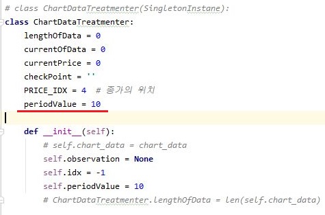 그리고 나서 기존에 있었던 self가 붙어 있었던 변수들은 위 스크린샷에서 볼 수 있는 것처럼, 일단 클래스 변수로 바꾸어 주도록 했습니다.