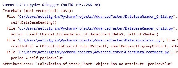 혹시나 싶어서 파이참에서 실행을 시켜서 확인을 해 보았더니, 위 스크린샷에서 볼 수 있는 것과 같이 일단 self가 붙은 변수가 제대로 값이 지정이 되지 않아서 발생하는 에러 였습니다.