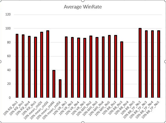 그리고 나서 승률에 대헛 알아보니, 4개의 경우를 제외하면 상당히 좋은 승률을 보여주고 있다는 것도 확인할 수 있었습니다. 그런데 왜 이리도 수익이 낮은 것 일까요?