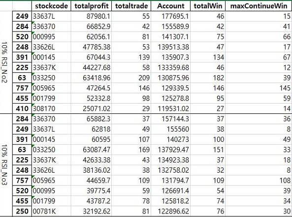 그리고 나서 위 스크린샷과 같이 일단 10%의 조건에서 얻은 결과들을 하나하나 정렬해 주도록 합니다. 이렇게 하는 것으로 일단 작업이 완성이 되었습니다.
