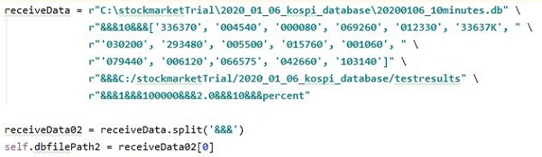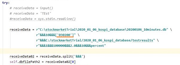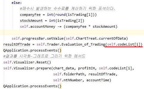 그리고 나서 이 작업을 하기 위해서 기존에는 아무것도 입력할 것도 없었는 메서드에 가서, 여기서는 일단 작업을 진행하기 위해서 종목의 코드를 집어넣어 주도록 바꿔줍니다.