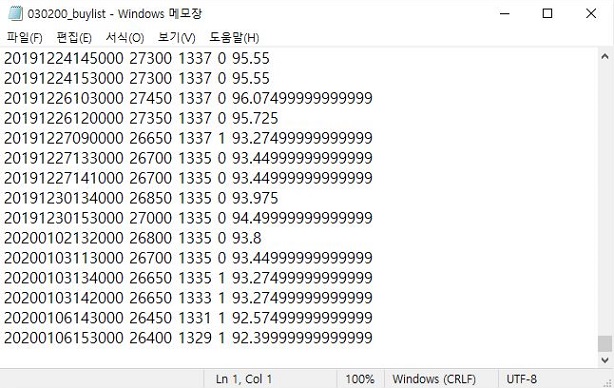 그리고 나서 다음으로는 매수와 매도가 어떻게 일어났는지에 대해서 알아보기 위해서, 일단 위 스크린샷의 텍스트 파일에 결과를 집어넣어 주는 코드를 도로 활성화 시킵니다.