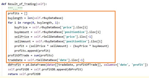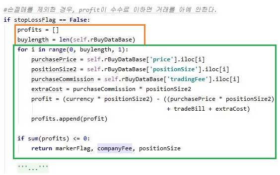 그리고 나서 계산을 하는 스탭에 가서도 위 스크린샷처럼 for loop를 이용, 하나하나 모든 매수 조건을 가지고 와서, 이걸 판매하는데 사용하도록 합니다.