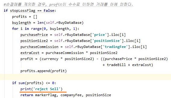 그리고 나서 매수가 일어날 경우에 실제로 매수가 가능한지 아닌지를 따져서 불가능하다면 그냥 hold처럼 나오도록 positionSize를 0으로 지정하고 돌려 보내도록 만들어 줍니다.