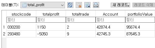 두번째 종목에 대해서는 같은 것을 확인할 수 있었습니다. 이렇게 하는 것으로 이제 매도가 일어나면, 어떻게 계좌가 급증하는 것을 반영할 수 있게 되었습니다. 다음으로 해야 할 것으로는......... 일단 1차적인 과정은 끝이 나기는 났습니다. 가장 큰 에러를 어떻게 수정했는데, 다음번에는 프로그램의 사용을 좀 더 편리하게 만드는 작업을 해야 겠습니다.