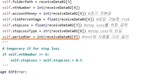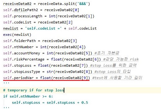 이번 포스팅에서는 목적이 간단합니다. 이걸 가지고서 일단 각각의 매도/매수 룰에서 계산을 하기 위한 period가 있습니다. 이걸 계속해서 바꿔주어야 하는 불편함 - 즉, 이게 바뀔때 마다 exe파일이나 이런걸 수정해 주어야 하는데, 그렇게 하지 말고, 일단 인터페이스 상에서 바꿔줄 수 있도록 만들어 주는 것이 필요했습니다.
