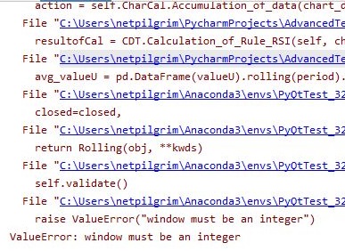 그런데 막상 실행을 시키니 에러가 발생했는데, 알고보니 여기에는 float형태의 데이터를 rolling에는 쓸 수 없고, 그저 int형태의 변수가 와야 하는 것 입니다.