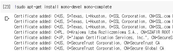 이게 무엇이 문제인가 했더니, 일단 mono로 만들어 주어야 한다는 이야기를 들어서 이번에는 mono라는 것을 구글 코랩에 인스톨을 시켜 주어야 했습니다.