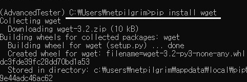 일단 제대로 작업을 하기 위해서, wget이라는 것을 pip를 이용해서 설치하도록 합니다. 이게 있어야 다음 작업이 가능하다는 자료를 일단 찾았습니다.