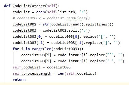 그리고 나서 다음으로 진행해야 할 것으로는 위 스클니샷과 같이 일단 코드 리스트를 txt파일로 부터 가지고 오는 메서드를 하나 만들어 주는 것 입니다.