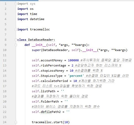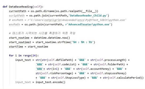 그리고 나서 다음으로는 원래라면 데이터 베이스 경로를 읽어오는 메서드였지만, pyqt5관련된 것은 다 지우도록 했고, 여기서는 for loop만 일단은 남겨 두도록 했습니다.