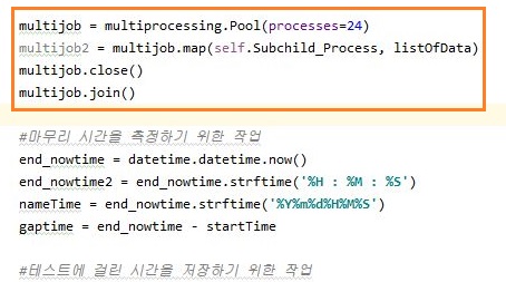그리고 나서 다음으로 작업을 하기 위해서는 위 스크린샷과 같이 일단 multiprocess에 관련된 메서드를 가지고 와서, 코드를 짜 주도록 합니다.