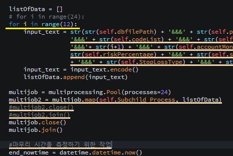 그래서 다음 작업으로는 위 스크린샷에서 볼 수 있는 것처럼, 일단 24개나 되는 멀티 프로세싱의 갯수를 절반으로 줄여서 어떻게 나오는지 알아보고자 합니다.