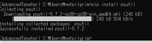 일단 아나콘다 프롬프트를 동원해서 위 스크린샷에서 볼 수 있는 것처럼 우선 psutil은 설치하는 것 까지는 간단하게 끝이 나는 것을 볼 수 있었습니다.