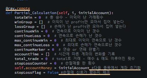 일단 지금 12시간씩 걸리는 방식으로 메인이 되는 데스크톱에서는 데이터를 계산하고 있는 중이고, 이런 와중에 한번 파이썬에서 ray를 사용하는 방식이 잘못 사용하고 있는 것이 아닌가 하는 생각이 들어서, 이걸 일단 한개의 multiprocess든 이렇게 만든 다음에, 여기서 주식 종목별로 계산을 하나하나 나누어서 하는 것으로 하나의 프로세스를 처리해 보고자 합니다.