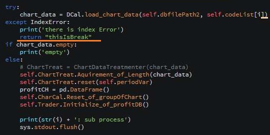 그리고 나서 다음으로 한 것은, 일단 기존의 while loop 등을 이용하는 구문이 있는데, 이 구문을 잘라내고, 여기서 부터는 일단 remote()라는 방식을 사용해서 일단 새로운 메서드로 독립시켜서, 하나의 주식 종목 코드마다 연산을 시키도록 합니다.
