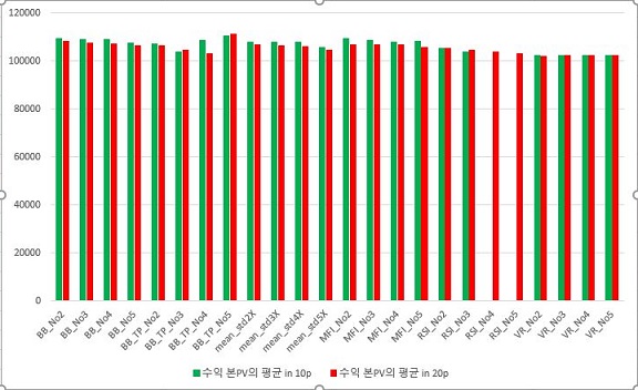 그래서 이것만으로는 부족해서, 마지막에 주식을 보유하고 있어서 손해로 판정이 된 종목까지 포함하는 포트폴리오 가치까지 따기기로 했는데, 여기서도 20period는 약간 수익의 양이 10period에 밀리는 것으로 보입니다.