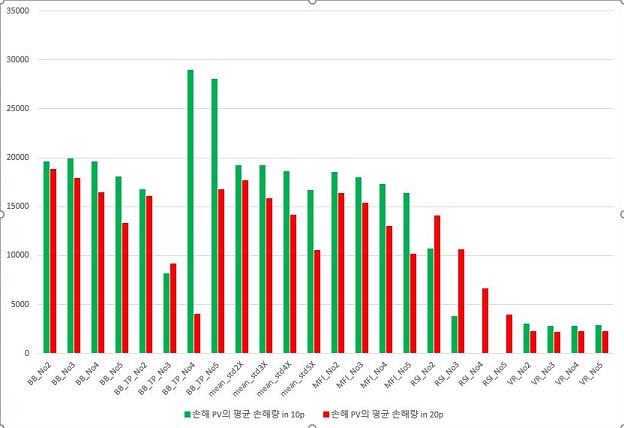 그리고 나서 손해를 본 포트폴리오 가치의 평균을 서로 비교해 보았습니다. 여기서 하나 알 수 있는 것은, 일단 전체적으로 20 period가 좀 더 손해를 덜 본 것으로 보입니다.