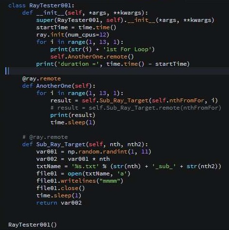 일단 자료를 찾아보니까, nested라고 해서, 뭐라고 해야 할까요? 일단 병렬처리를 위한 하나하나의 프로세스에 다시 병렬처리를 넣어준다고 할 수 있는 과정을 밟아 보도록 하려고 합니다. 일단 이전에는 클래스를 ray의 타겟으로 해서 움직이게 하려고 했습니다만, 이게 신통치는 않았습니다.
