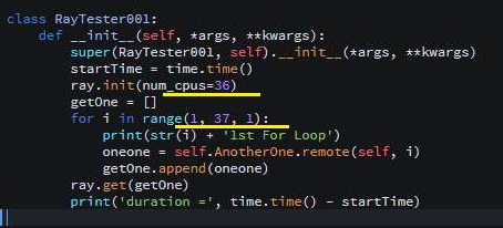 그래서 다음 실험은 일단 cpu의 갯수를 36개로 맞추어 놓도록 하고, 그 다음에는 처음 접하는 ray의 타겟은 36개의 병렬과정이 나오도록 합니다.