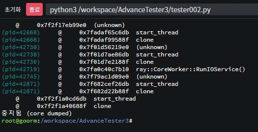 그런데 여기서 ray의 한가지 문제점이 나오기는 나왔습니다. 너무 오랫동안 프로그램을 돌린 탓일까요? 일단 중간에 잘 나가다가 이렇게 중단이 되어 버리는 문제점이 나왔습니다.