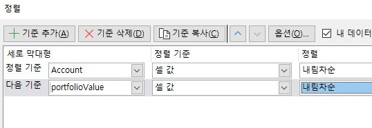 가장 우선이 되는 조건은 역시나 Account라고해서 현금을 얼마나 보유했는냐 하는 여부이고, 그 다음으로 중요한 것은 PV라고 해서 포트폴리오 가치가 얼마나 되느냐 하는 여부입니다.