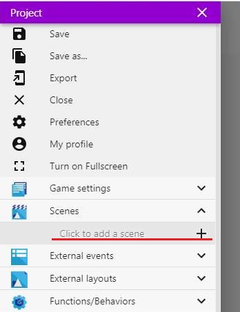 먼저 프로젝트를 만들어 보도록 하고, 크롬 상에서 새로운 씬을 만들어 보기 위해서, 위 스크린샷의 click to add a scene을 클릭해 보도록 했습니다.