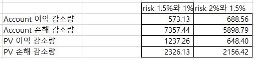 그리고 다음으로 봐야 하는 것으로는 바로 손해본 평균손해량을 한번 보도록 하는 것인데, 여기서는 제 기대대로 리스크가 적어 질수록 상당히 크게 줄어드는 모습을 볼 수 있었습니다.