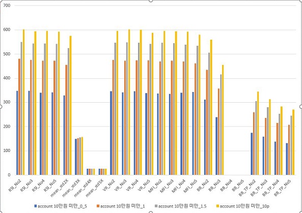하지만 손해를 본 종목의 갯수에 대해서 한번 이야기를 하자면, 여기서는 그렇게 나은 것이 제 기대대로 손해를 보는 종목의 갯수가 Account상으로는 점점 리스크가 줄어듦에 따라서 줄어드는 것을 볼 수 있었습니다.
