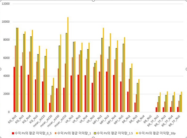 그리고 나서 손해를 본 손해량인데, 일단 여기서는 제 기대대로 리스크가 적어지면 적어질 수록 점점 손해의 크기가 엄청나게 줄어드는 것을 볼 수 있었습니다.
