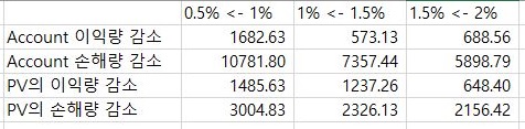 그리고 나서 다음으로 해야 할 것이 하나 있습니다. 바로 포트폴리오 가치상으로 이익량이 어떻게 변했는가 하는 것인데, 일단 이 부분에 있어서는 0.5%에 이르럴서 포트폴리오 가치상 수익이 증가하는 경우는 없다는 것 입니다.