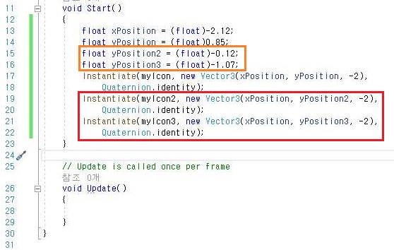 그리고 나서 instantiate를 2개 더 추가로 만들어 주어서 위치를 좀더 Y축으로 아래에 위치할 수 있도록 만들어 주도록 합니다.