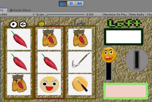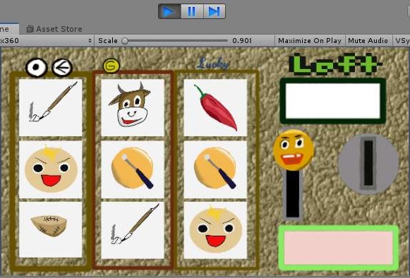 그리고 나서 다시 작업을 했을 경우에는 새로이 그리고 랜덤하게 아이콘이 배치가 되는 것을 확인할 수 있기는 있었습니다. 이렇게 하는 것으로 일단 작업이 하나 완성이 되었는데, 이제 처리해야 하는 것이 레버를 당기고, 당기면 어떻게 랜덤하게 움직이게 할 수 있느냐 입니다.