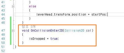 그리고 나서 충돌이 일어나면 호출이 될 메서드에서 아예 이렇게 속도가 0이 되라는 식으로 어떻게 코드를 짜 주도록 했습니다.
