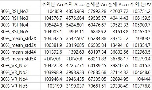 가장 먼저 할일은 한개의 엑셀 시트에 모든 매도/매수 룰의 결과를 가지고 와서, 한개로 모아놓은 다음에 평가에 필요한 지표들을 하나하나 계산해 보도록 합니다.
